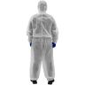 Комбинезон с капюшоном, застёгивается на "молнию". Изготовлен из 100% полипропилена «cпанбонд» – нетканого безворсового материала. Нетоксичен, не вызывает аллергических реакций, антистатичен, имеет хорошую воздухопроницаемость одновременно с пылезащитными свойствами. Комбинезон надевается поверх повседневной одежды и при носке не доставляет человеку неудобств за счет своей просторности и невесомости.