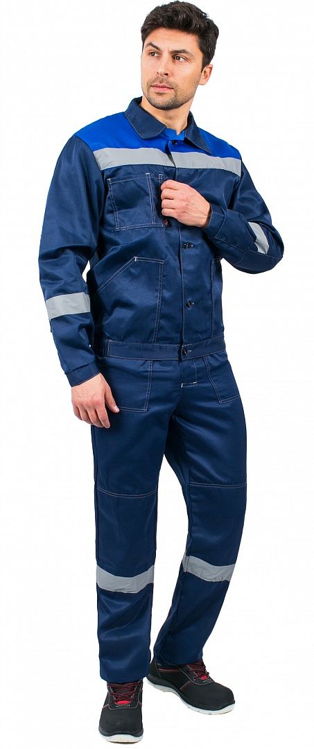 Светоотражающая полоса 50 мм по кокеткам спинки и полочек, рукавам, низу полукомбинезона.