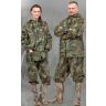 Костюм состоит из куртки и брюк. Куртка с застежкой на молнии, клапаном против ветра, капюшоном, двумя карманами с клапанами, манжетами на рукавах. Брюки с манжетами.